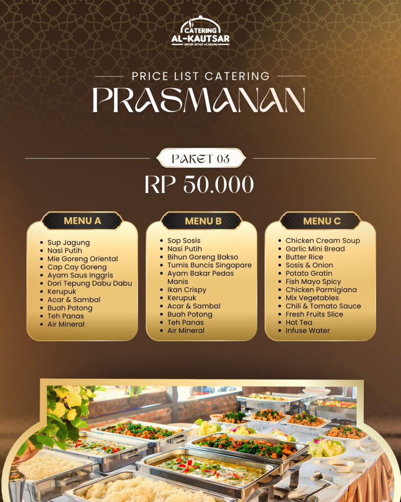 Urus konsumsi acara jadi jauh lebih mudah dengan Catering Prasmanan Alkautsar.